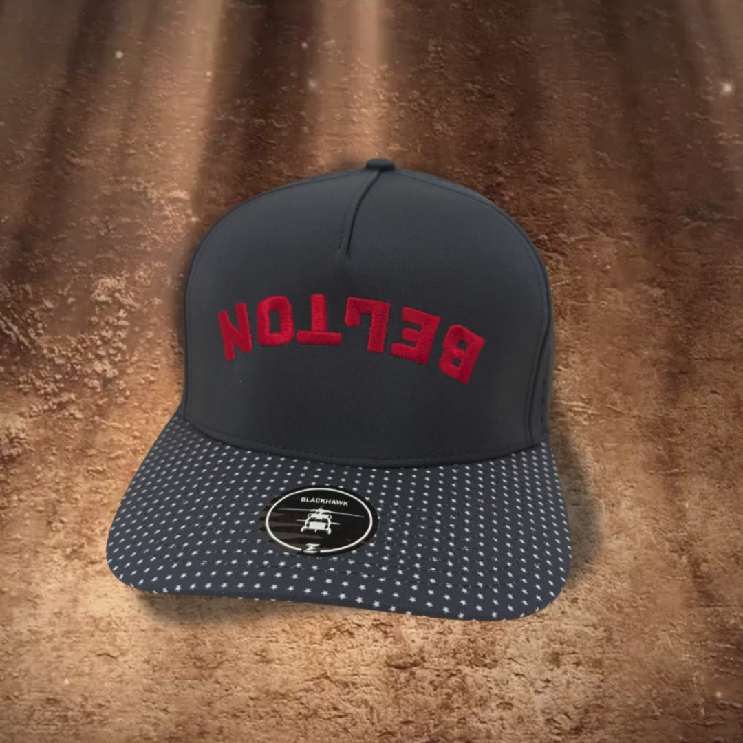 Water repellent outer shell, sweat absorbing perforated sweatband, and a perfect medium profile fit. Made from comfortable spandex and structured polyester/cotton face.