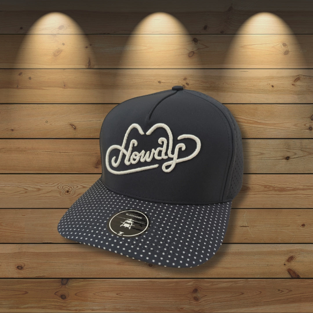 Water repellent outer shell, sweat absorbing perforated sweatband, and a perfect medium profile fit. Made from comfortable spandex and structured polyester/cotton face.